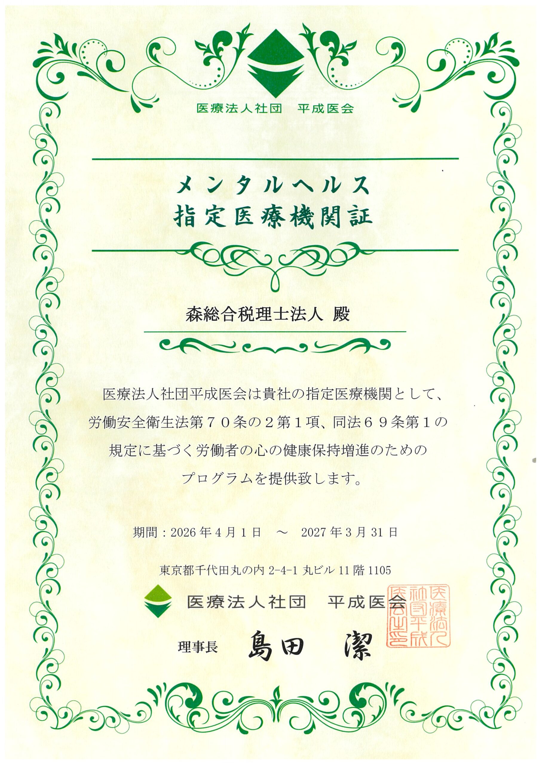 2026/02/02 BLOG メンタルヘルス支援体制の強化について 当法人では、社員の心身の健康を重要な経営課題の一つと捉え、職場環境の整備と健康支援に取り組んでいます。 その一環として、メンタルヘルス指定医療機関と連携し、心の健康保持・増進を目的としたプログラムを導入しました。 安心して相談でき、長く働ける職場づくりを、これからも大切にしていきます。